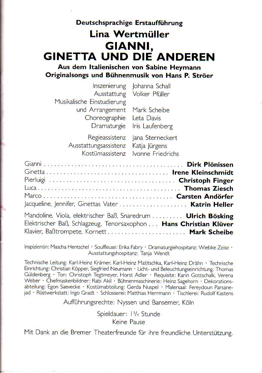 1986 Wien - Elke Lang - Schauspielhaus - Hamburg - Udo Lindenberg „Horizont“