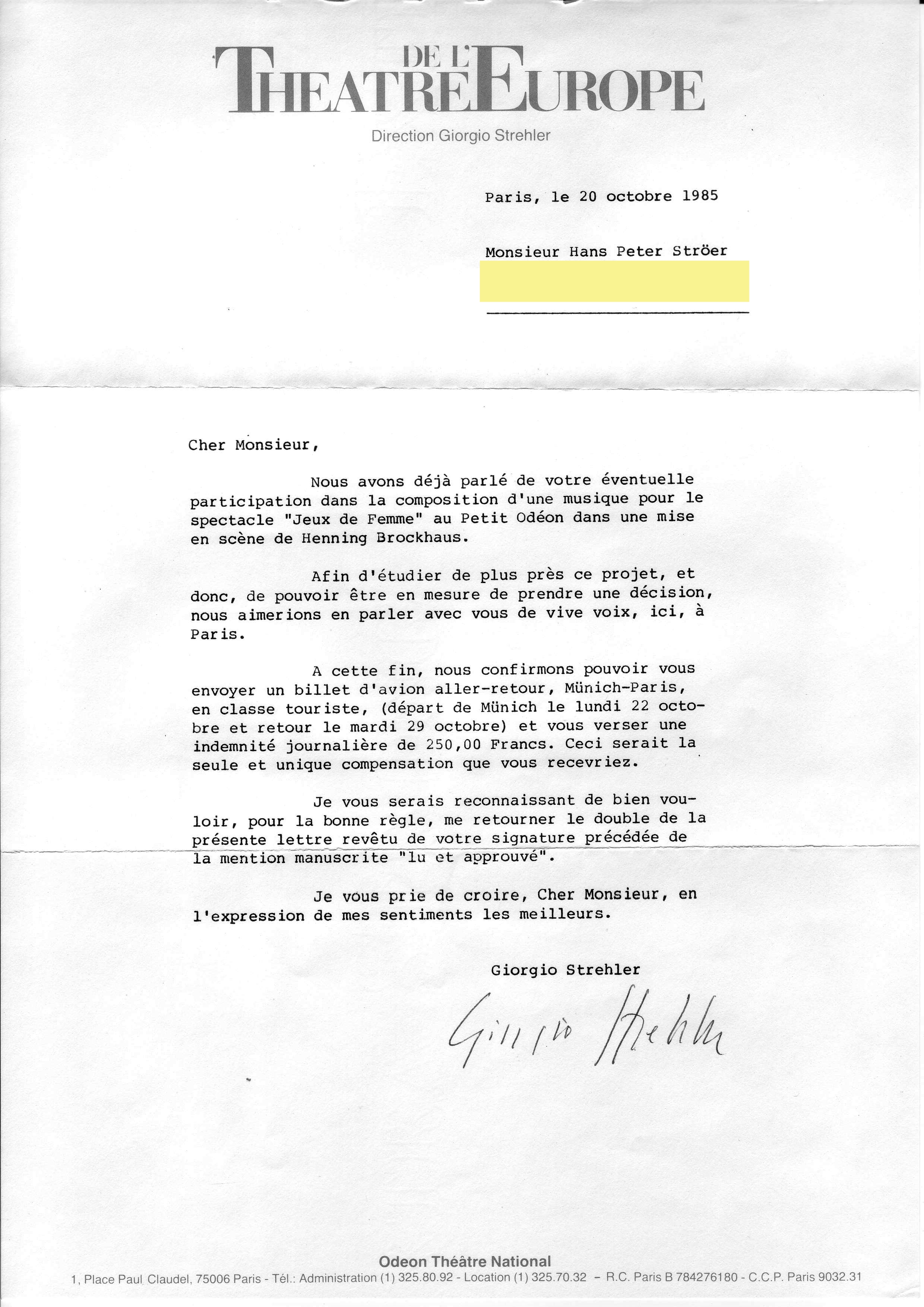 1985 Howard Fine - "Nomaden" - Paris - Giorgio Strehler - Leslie Caron