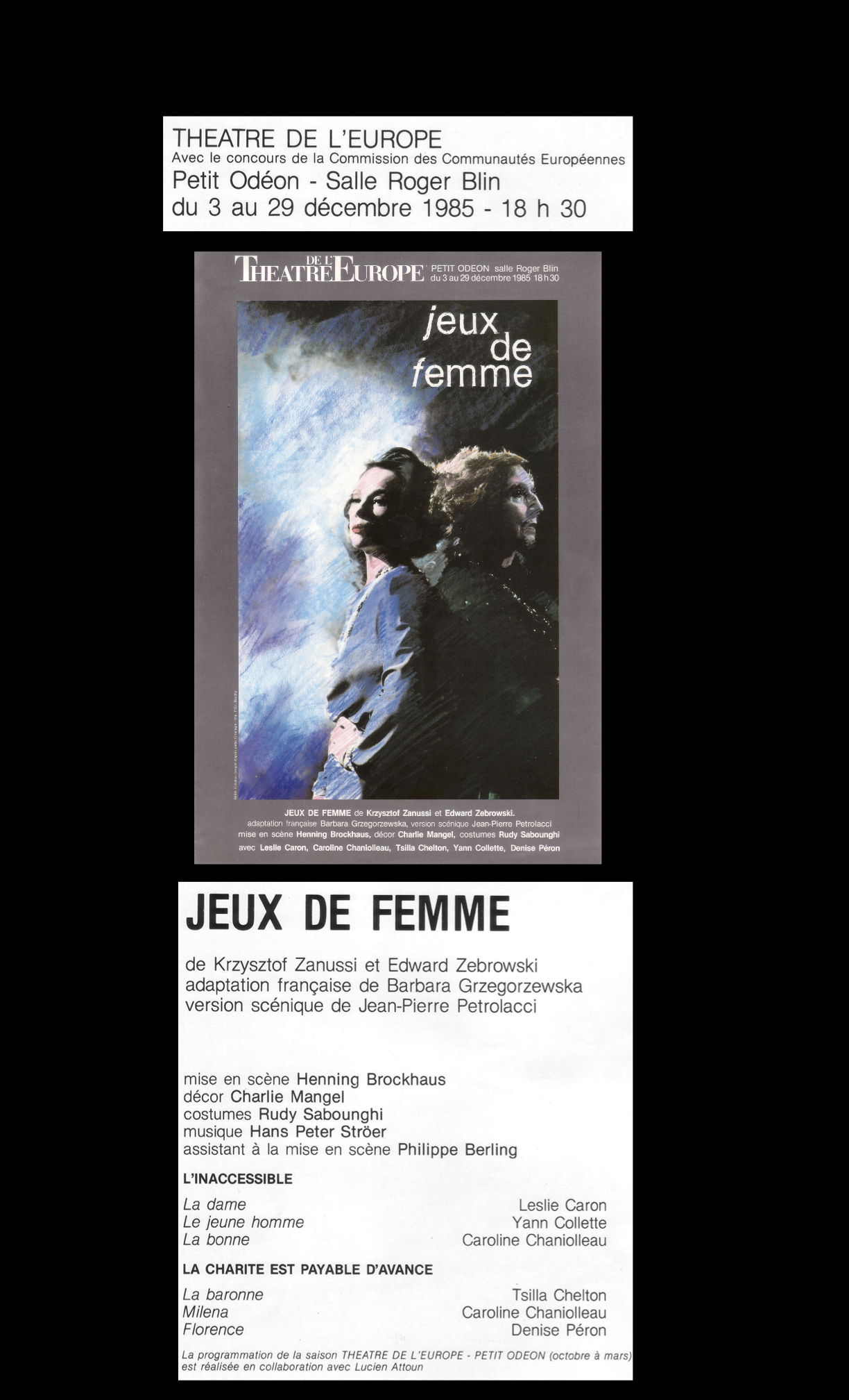 Bühnenmusik zu "Jeux de Femme" mit Leslie Caron, Theatre Odeon, Paris, Produktion Giorgio Strehler, Regie Henning Brockhaus